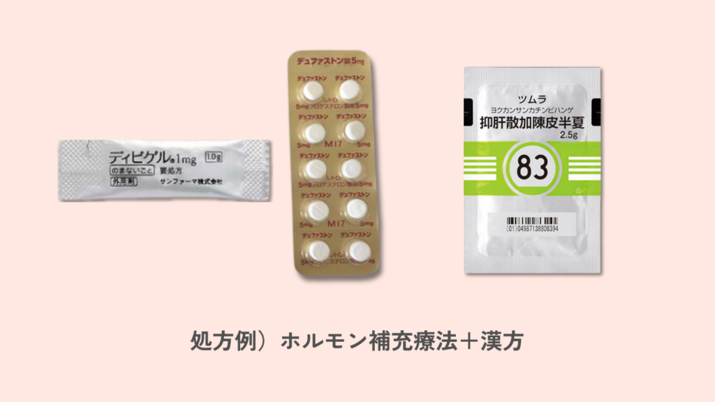 ホルモンバランスの急激な変化による自律神経の乱れと判断し、ホルモン補充療法のジェル経皮投与を開始。またイライラや神経の高ぶりを鎮める漢方(抑肝散加陳皮半夏)を合わせて処方。